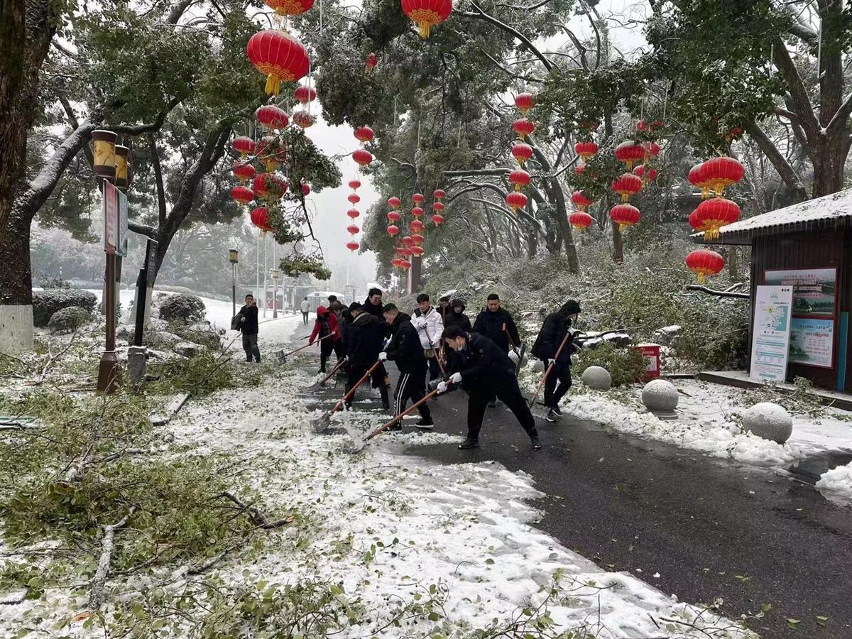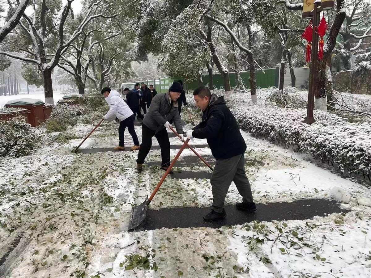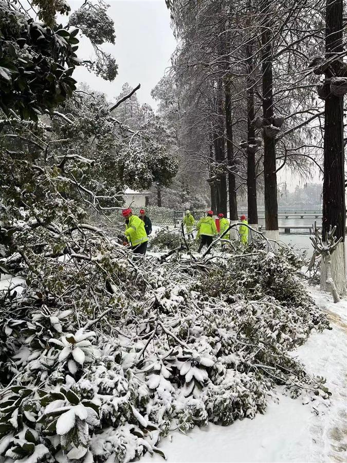 与此同时,该管理处积极开展融雪防冻工作,继续清除听涛景区、九女墩、梨园广场、办公区域积雪,清理主要道路及屋顶上的树木断枝及积雪。据不完全统计,共出动336人次、保障车辆20台,铺设3000条防滑草垫、800余条麻袋,撒900公斤融雪盐,清理景区断落树枝212余处,清运断枝24车。目前无人员受伤及房屋垮塌等安全事故。