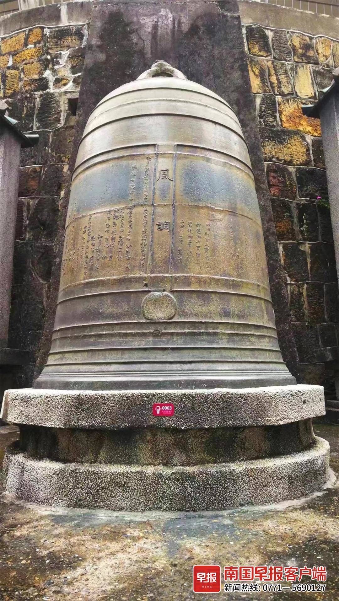 ▲有500年历史的古铜钟安放在南宁人民公园镇宁炮台内。邓新宁 摄