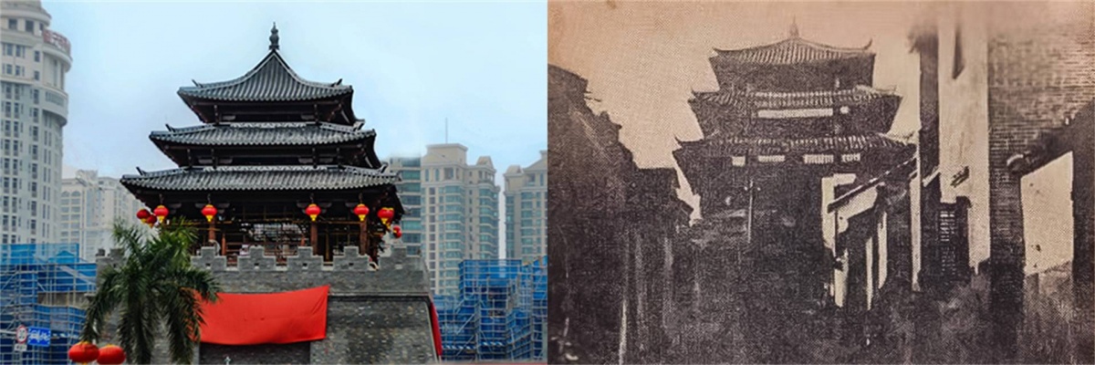 ▲南宁钟鼓楼将重现500年前雄姿,右图为南宁钟鼓楼的史料照片。
