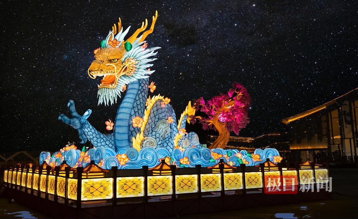 2024年农历小年之夜,瑞雪纷飞,寓意着丰收与吉祥。位于武汉黄陂的甘露梦华里宋式水镇商街迎来了一场震撼人心的视觉盛宴,一座高达7米、长达12米的“樱花神龙”巨型龙灯崭新亮相。锐爪踏祥云,樱花簪龙须,璀璨的灯光映得龙须摇曳生姿,龙鳞熠熠生辉,仿佛一条巨龙跃然腾飞。过往的市民们驻足观看,惊叹不已,纷纷拿出手机拍照合影。