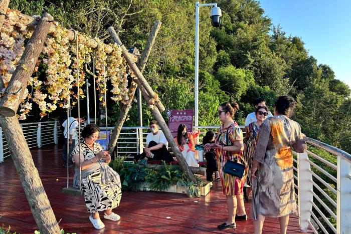 甲辰龙年,不少游客在三亚开启“寻龙游”,打卡与龙有关的景区景点。“我们很早就来了,打卡了过龙江索道、龙雕广场,现在准备直接去山顶。”在亚龙湾热带天堂森林旅游区,中外游客漫步在景区中赏花观景,登高望远,乐享春节假期的美好时光。