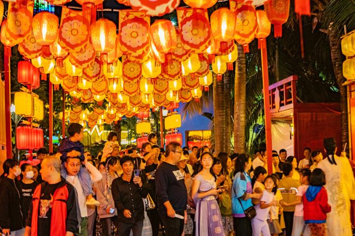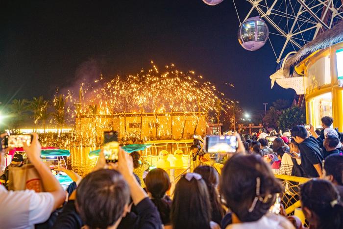 “园区对88米高的摩天轮进行了灯光升级,假日期间每天上演精彩的龙年主题光影秀。”三亚海昌梦幻不夜城相关负责人介绍,园区做足“夜间消费”文章,打造了“海昌·幻唐”沉浸式唐风主题实景街区,策划推出了“火树银花”打铁花和“舞火龙”2大非遗表演,梦幻夜光花车巡游、国风游园会等上百场开放式的精彩主题演艺,持续丰富旅游体验。
