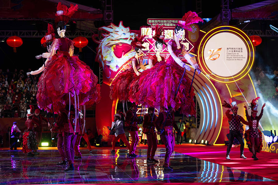 精彩的花车巡游和文艺表演,以及压轴绽放的烟花表演,让市民和游客在浓郁的节庆氛围中共贺新春和澳门特区成立25周年。