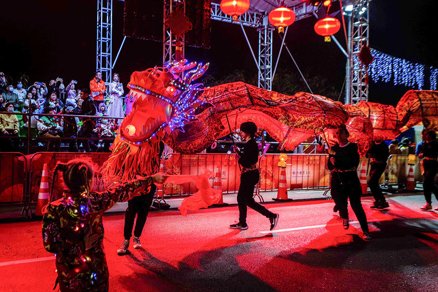 演员在2024年农历新年花车汇演腾龙运钻欢乐春节”上表演