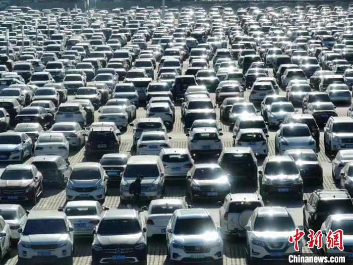 2月13日,五台山景区一处停车场停满车辆。山西交警供图