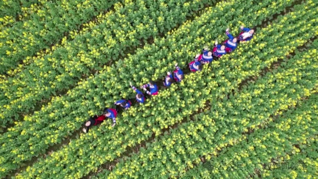 随着气温回升,贺州市富川瑶族自治县麦岭镇1.2万亩油菜花也进入了盛开期,当地第一届油菜花节暨美食节、广场舞比赛、摄影大赛等一系列活动开展得如火如荼,游客们用相机、无人机等,记录下这春意盎然的风光。
