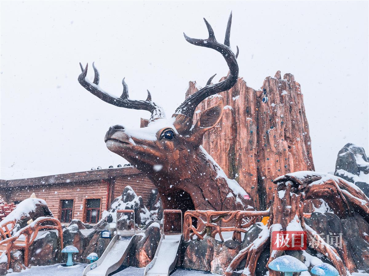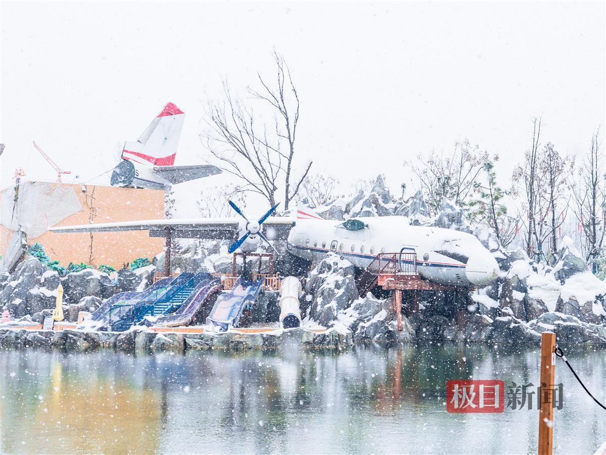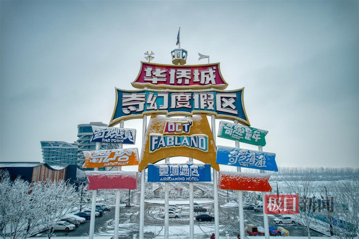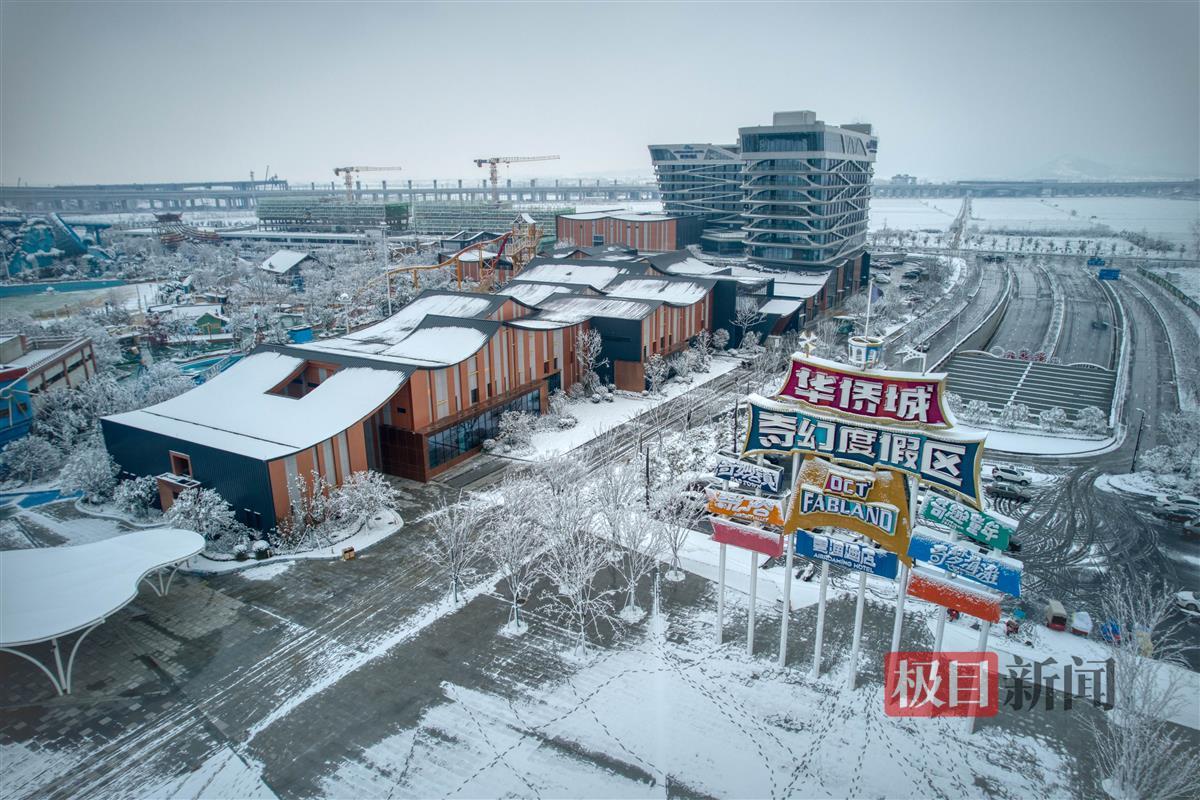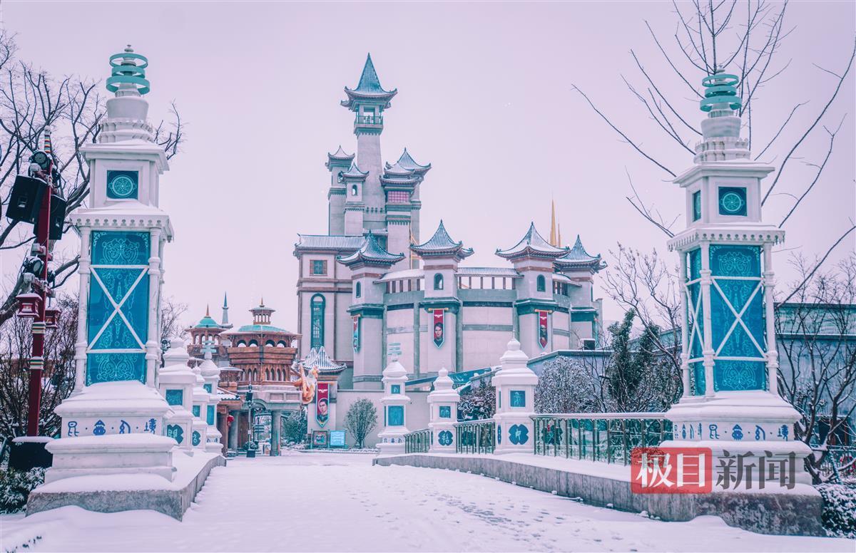 一场大雪过后,湖北襄阳华侨城奇幻度假区披上了银装,化身一座“冰雪童话世界”。