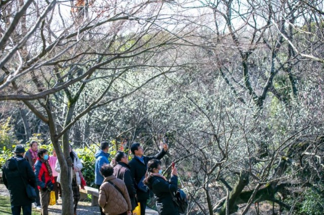 目前,香雪海的梅花已迎来了最佳观赏期。园内梅花开得正盛,游客纷至沓来,白梅如雪,红梅似霞,各色梅花交错其中,尽享“梅”好时光。