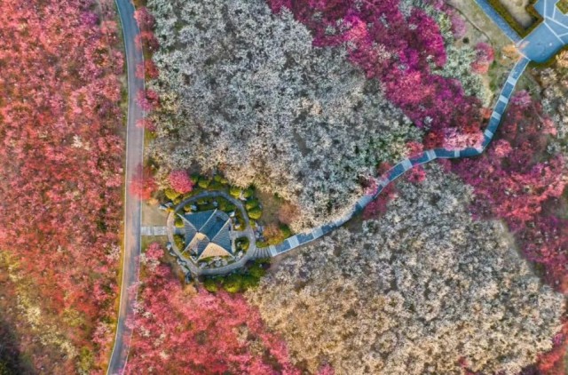 满树盛开的梅花白的像雪、红的似火、黄的赛金,带来生机与希望,有机会可以去看看!
