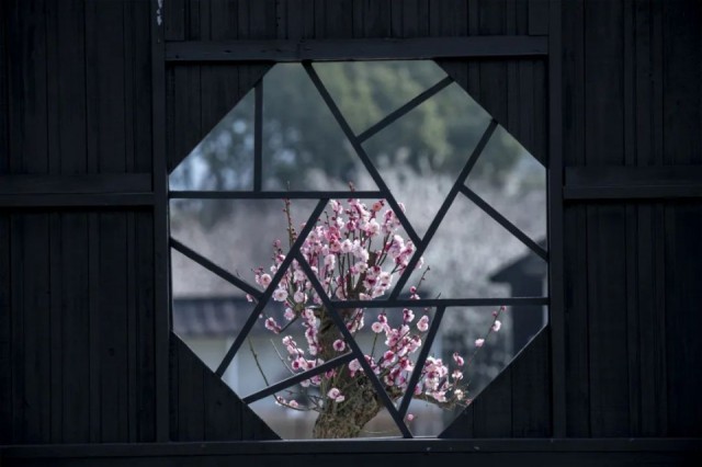 如今挹清堂、学古堂前皆植有梅花,中式花窗掩映着一枝枝红梅,犹如一幅自然天成的国画,未走近就能闻到丝丝清香。