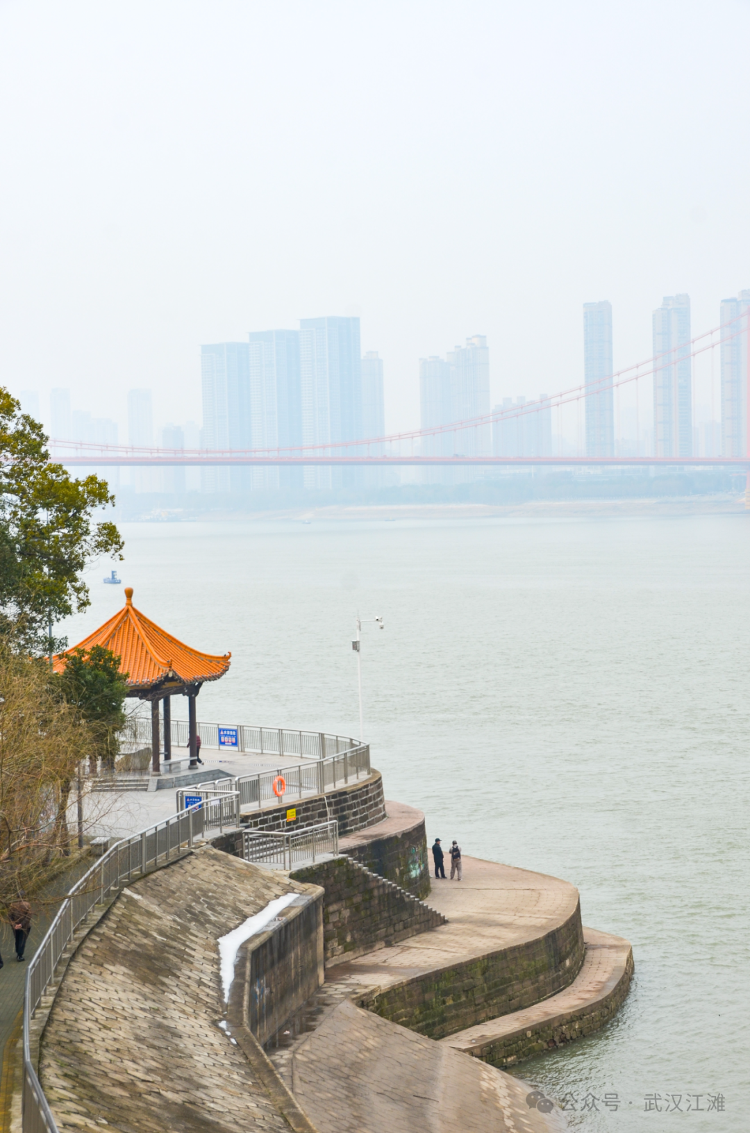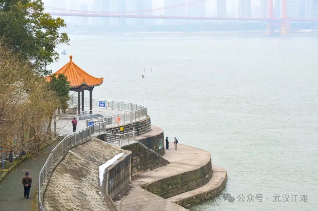 一座斑驳的矶岸,见证着数百年历史时光中的江水涨退,一座仿古的凉亭,映衬出武汉人依水而生的悠然自在。