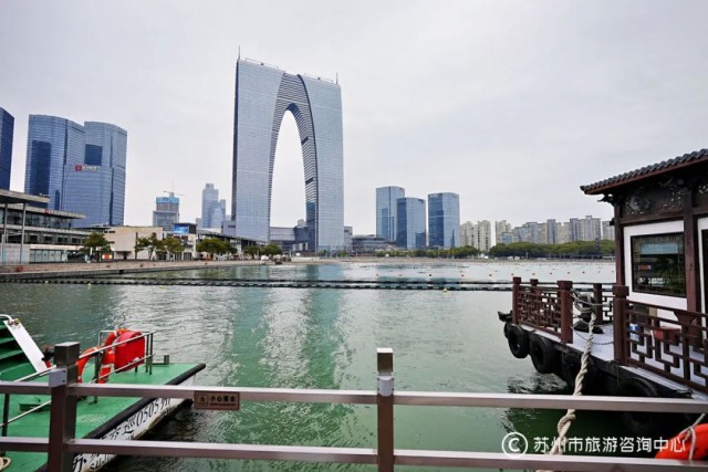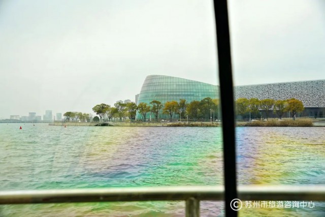 苏州文化艺术中心→诚品生活苏州→月光码头(水上巴士)→望湖阁码头→东方之门→苏州中心商场→金鸡湖音乐喷泉(夜游)