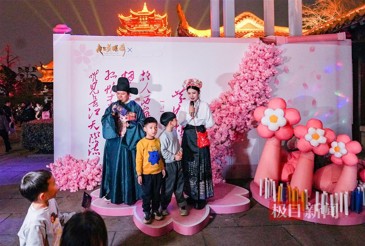 烟花三月下江城,《夜上黄鹤楼》添加了各种樱花元素,将赏樱的氛围感拉满。“武汉被誉为中国的‘樱花之城’,我们希望让游客在夜间也可以感受到春日的浪漫,同时传递传统诗词文化,让大家进一步了解武汉的历史文化风情。”黄鹤楼夜游相关负责人说。华灯初上,樱花绚丽,一起相约黄鹤楼,共度美好光“樱”!