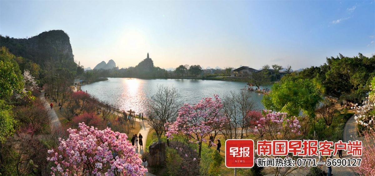 目前,桂林进入了最美赏樱季。樱花开放时间预计将持续到4月。