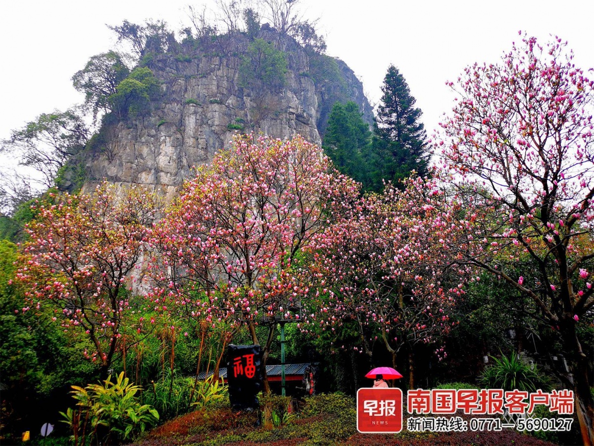 ▲桂林市穿山公园紫玉兰、白玉兰绽开。李腾钊 摄