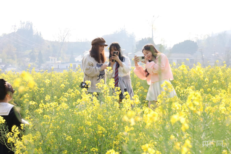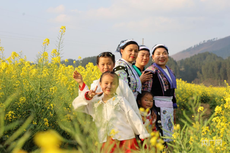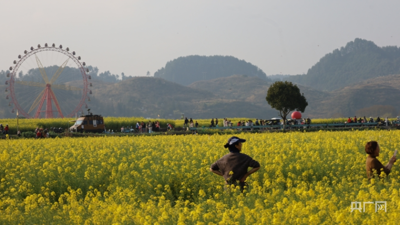 游客在贵定县金海雪山油菜花田踏春赏花(央广网发 吴镇远 摄)
