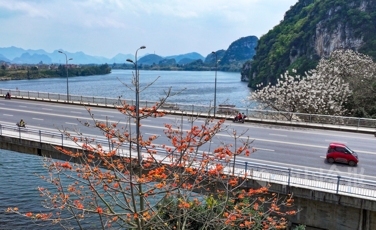 木棉花也开始露脸,桥的对面是泡桐花。