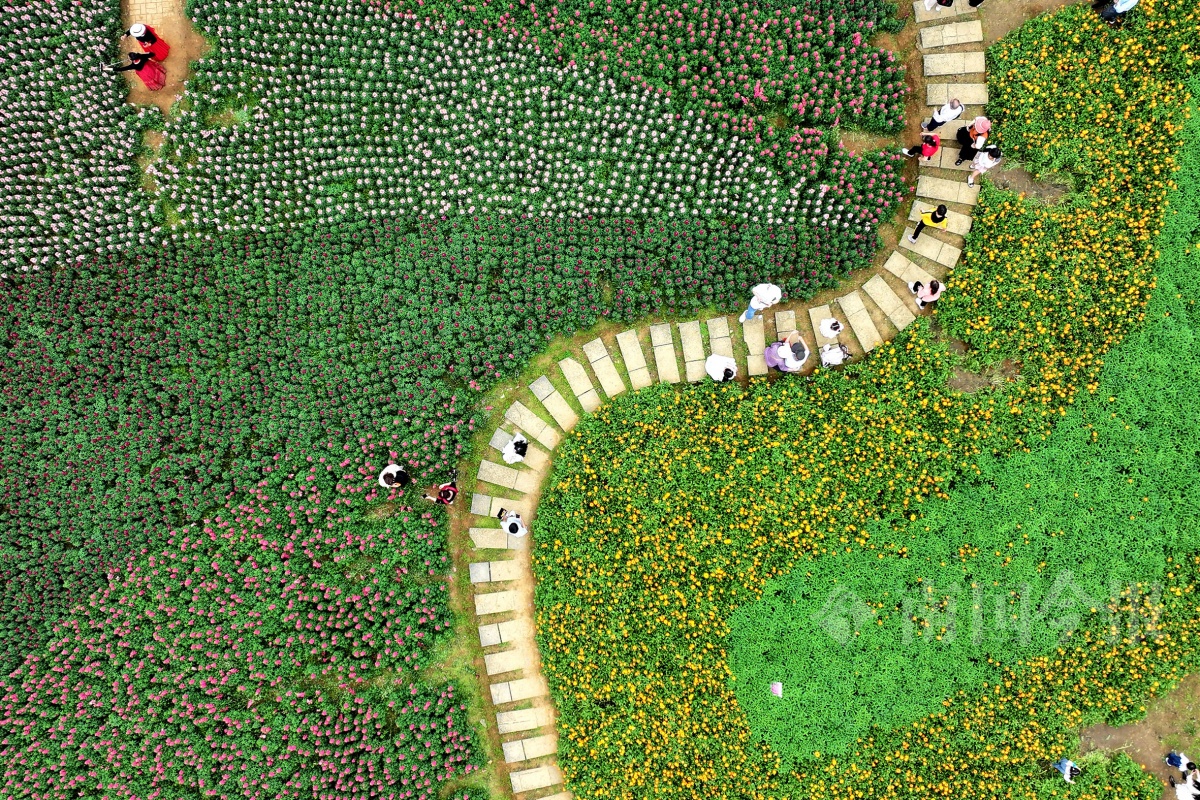 市民在公园赏花。