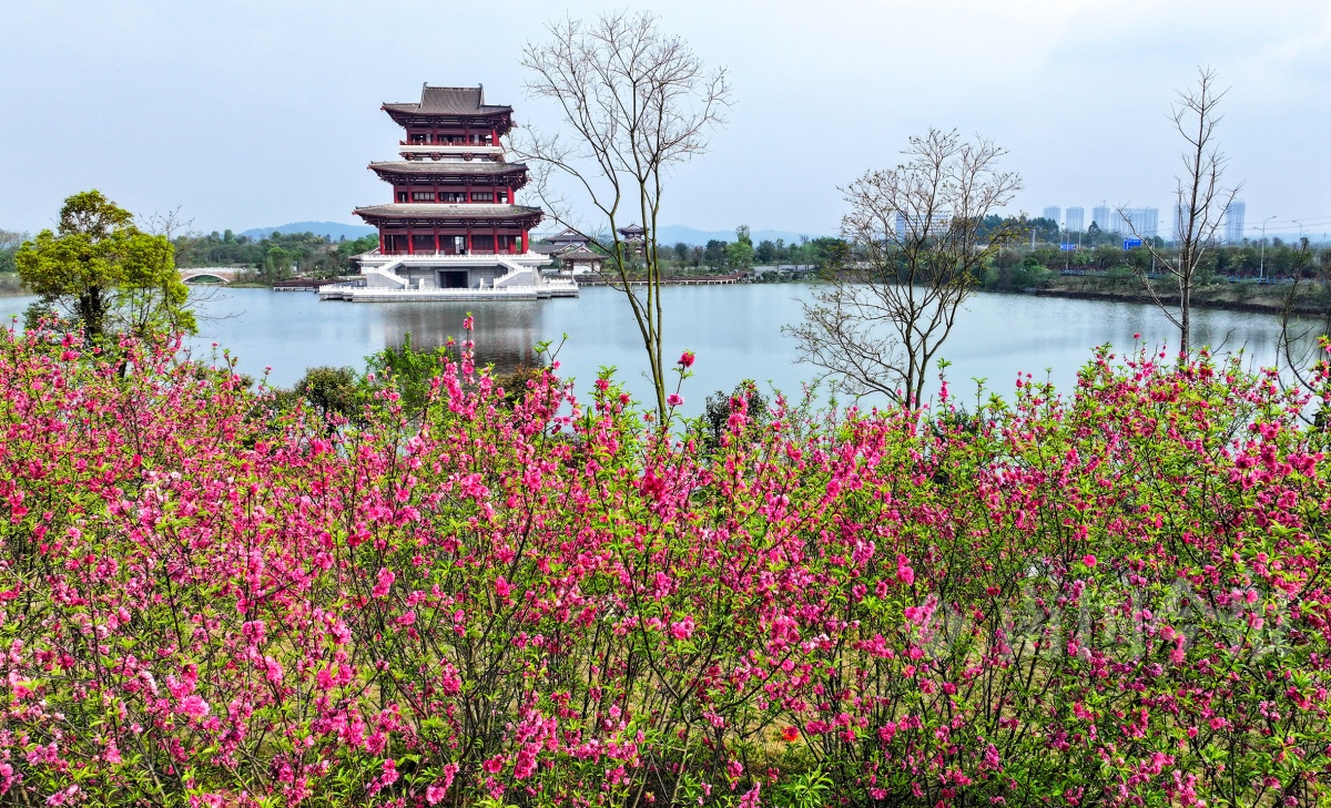 北部生态新区湿地公园里的桃花。