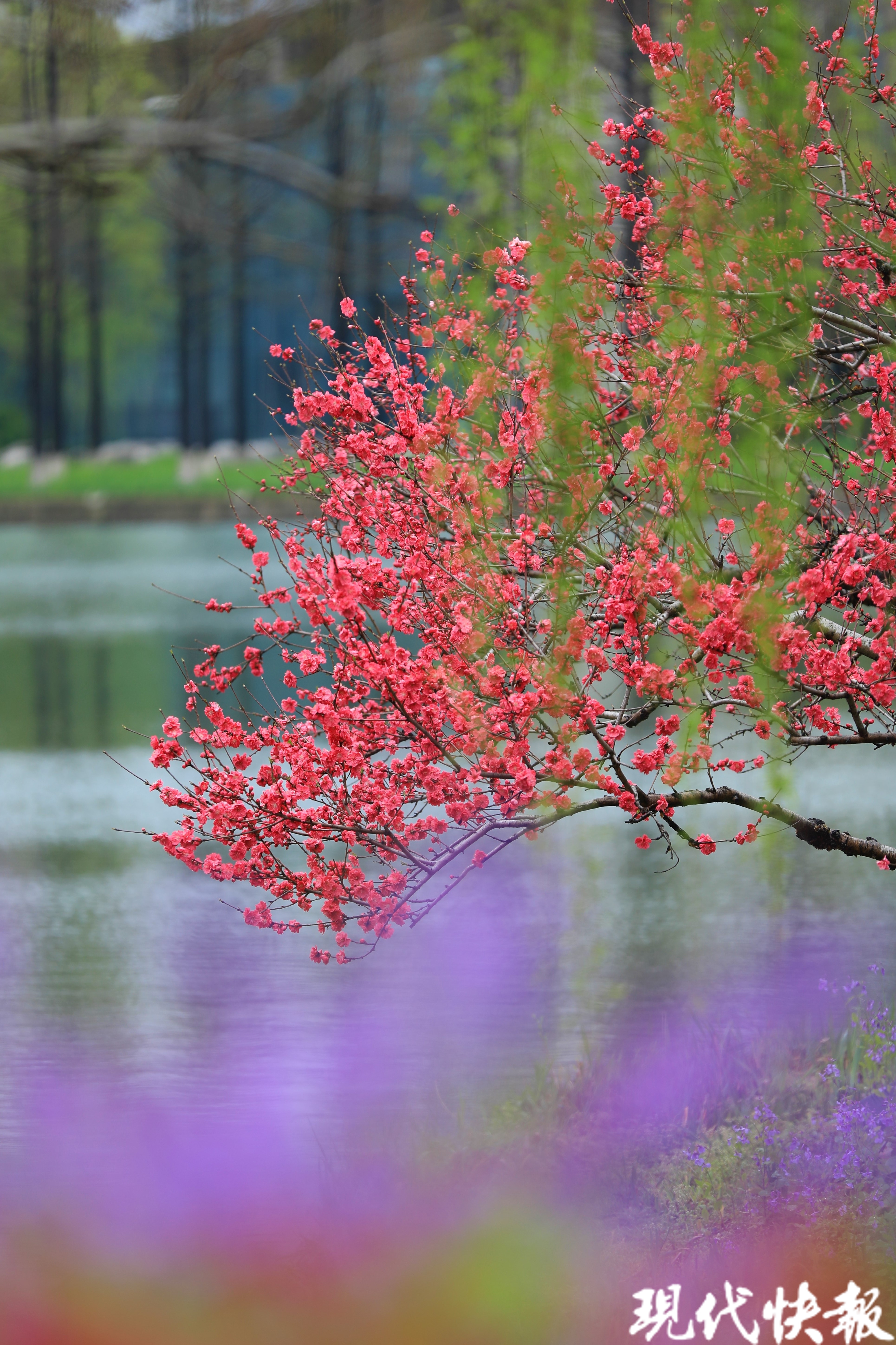 另外,农耕区2000多平方米的油菜花田赏花正当时,3000多平方米的二月兰也跟随桃花节的脚步如火如荼地开着,蓝紫色小花成片成片,勾画出圩墩迷人的河岸线。