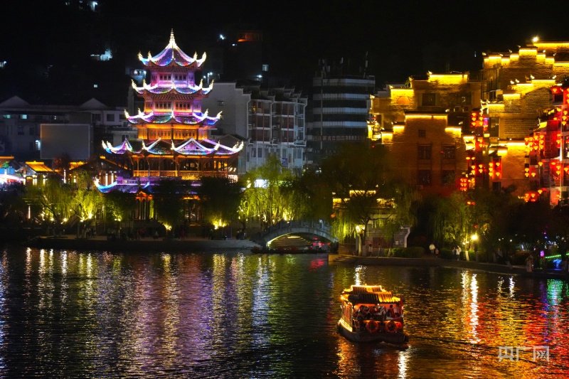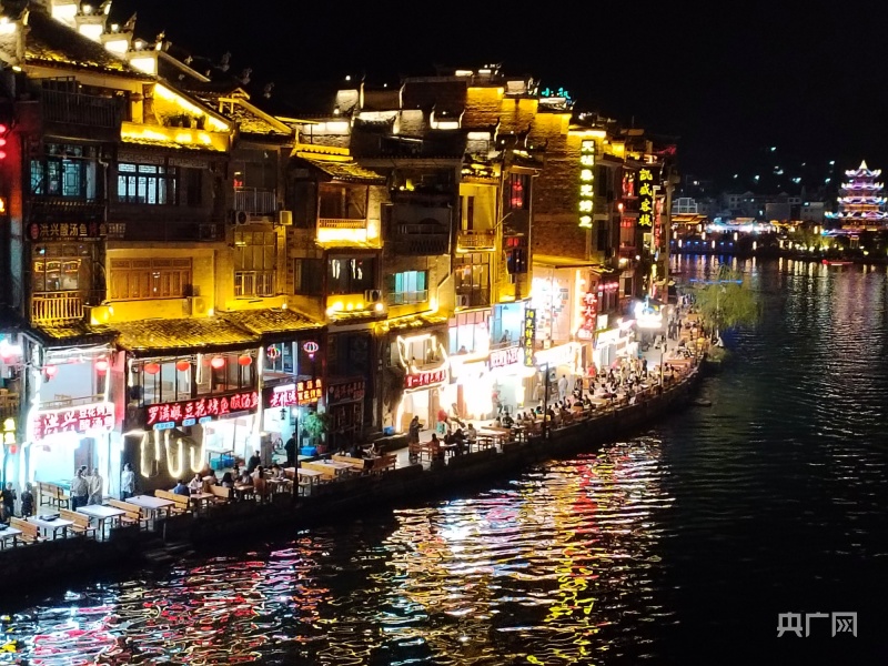 贵州镇远古城夜景醉人,热闹纷繁(央广网记者 杨贇 摄)