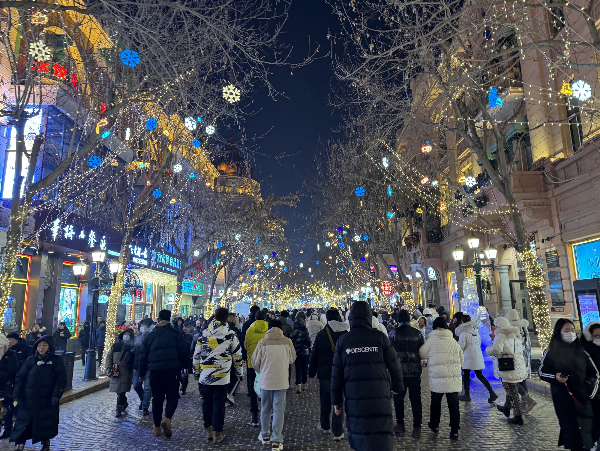 哈尔滨中央大街游人如织(央广网记者马俊玮 摄)