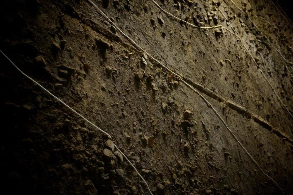 在中国大运河博物馆,最具特色的展品便是长25.7米、高8米的河道剖面——开封州桥遗址的古汴河河道剖面。它占据了一面墙,上面弯弯曲曲、高低错落的线条清晰勾勒出自隋唐至明清的地层。