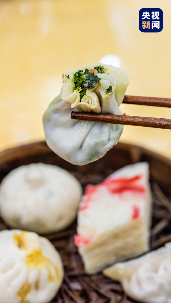鲜香入骨的蟹黄汤包,汤汁儿入口,香气四溢。