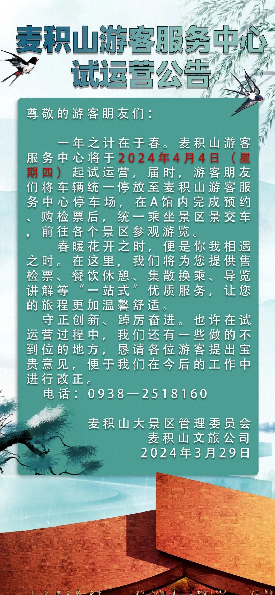 甘肃天水麦积山景区:游客服务中心4月4日起试运营
