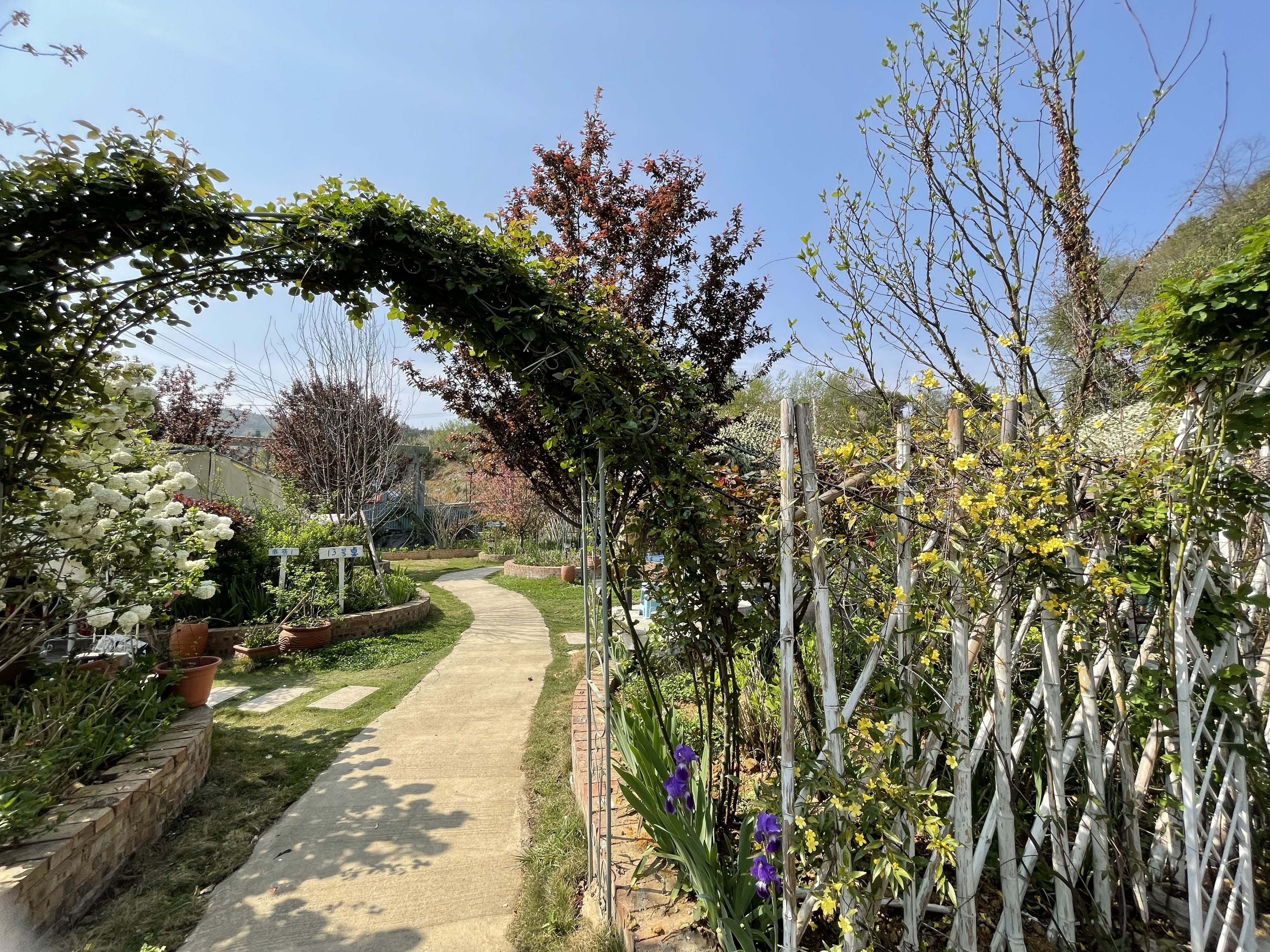 村民莫子兰创办的“沫沫的花园”户外烧烤野炊营地就是其中一个。近日,走进“沫沫的花园”小院,数十种花卉植物已陆续进入开花期,艳红的桃花、紫红的海棠花、蓝色的鸢尾花、粉白的樱花、浅绿的木绣球陆续绽放,红砖式小屋、拱墙穿插其间,将这个农家小院装点得非常漂亮。
