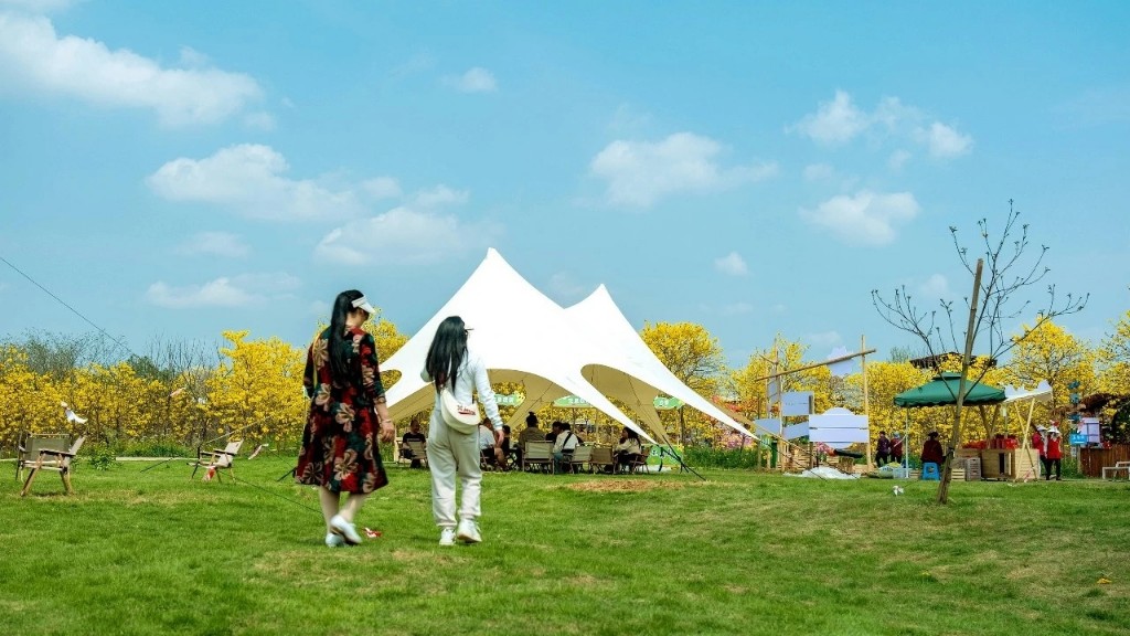 除了看花拍照,这里还可以进行多种玩乐活动,童趣十足的无动力设施游乐园、可爱有趣的萌宠乐园、在绿草如茵的草坪上拉起天幕和朋友一边聊天一边品茗享春日的快乐,此外还有地道的农家美食、香甜的奶茶、美味的柴火鸡一应俱全。