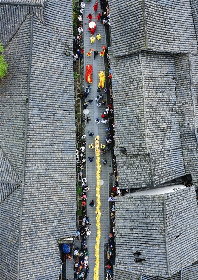 270节龙身汇聚成“汇江老龙”在元通古镇古街上巡游