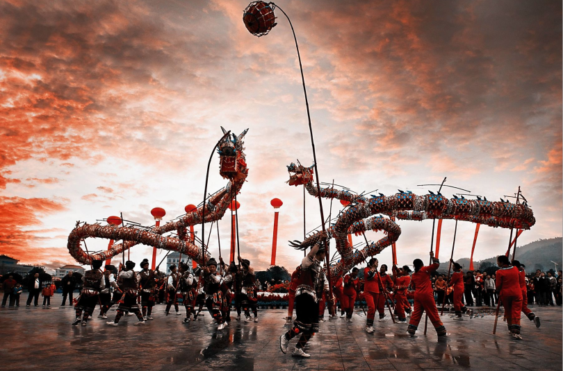 各具特色的传统舞龙队