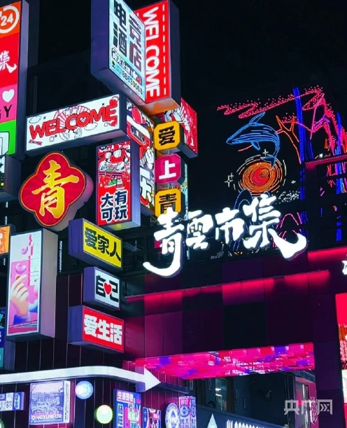 夜晚的青云路烟火气十足(央广网记者 栾小琳 摄)