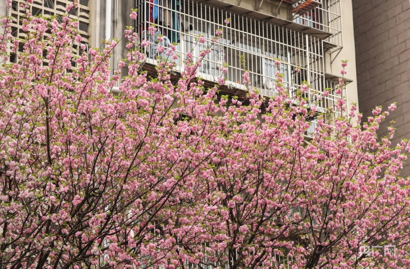 贵阳市观山湖区樱花烂漫,透着浓浓春意(央广网记者 栾小琳 摄)