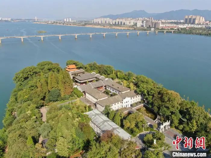 图为航拍地处吉安市赣江江心洲上的白鹭洲书院。刘力鑫摄