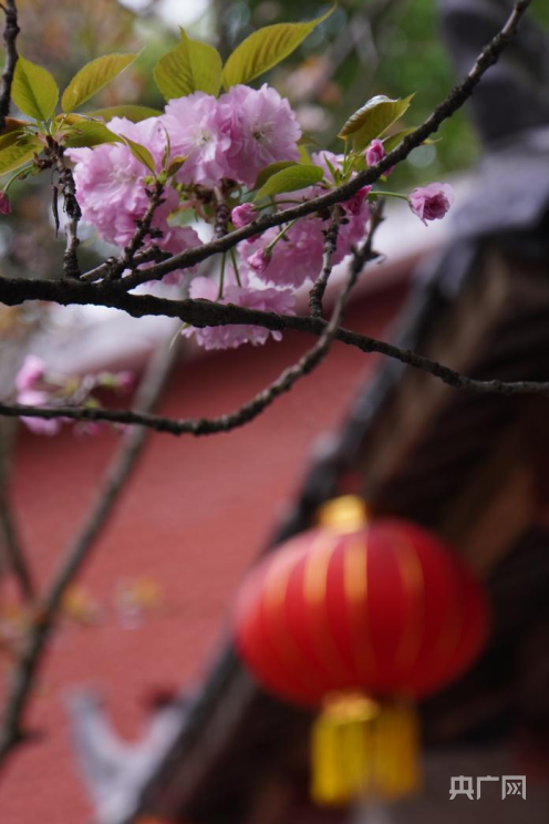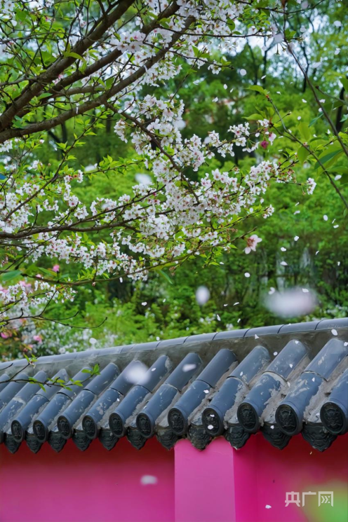 红墙与晚樱(央广网发 张蔓 摄)