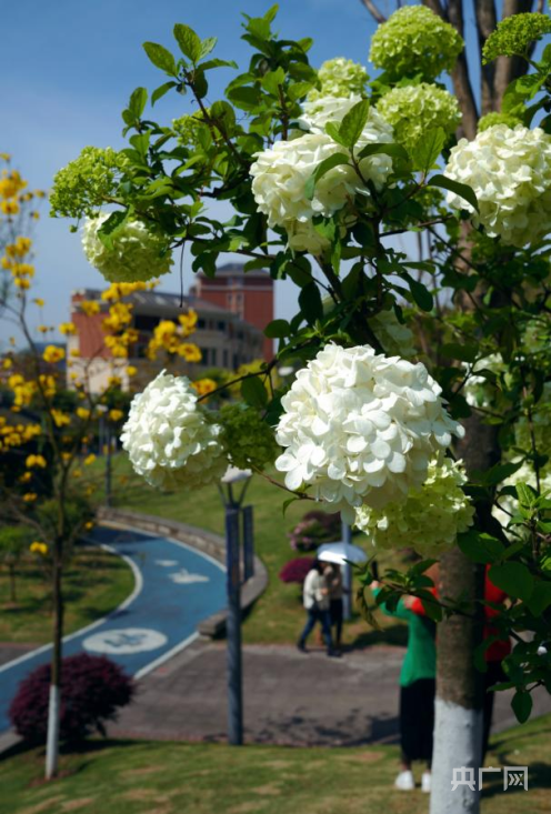 步道旁的绣球花(央广网发 张蔓 摄)