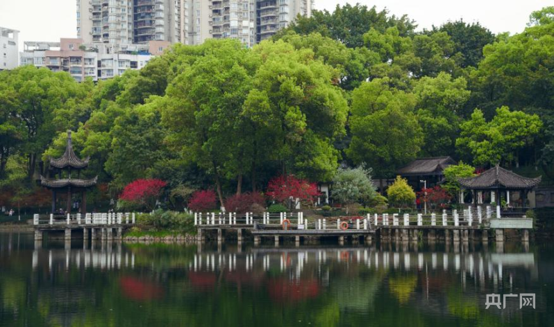 沙坪公园,孩子们在草地上奔跑嬉戏,老人在树荫下悠闲地聊天。公园内的湖泊波光粼粼,倒映着蓝天白云和绿树红花,美不胜收。