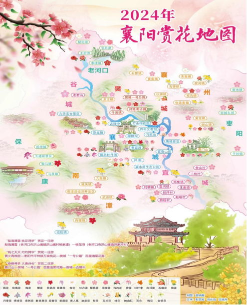 襄阳市文化和旅游局、襄阳融媒体中心联合推出2024年襄阳赏花地图,以手绘的方式,生动呈现各县(市)区赏花资源,实现品种、花期、精品旅游线路一图尽览。