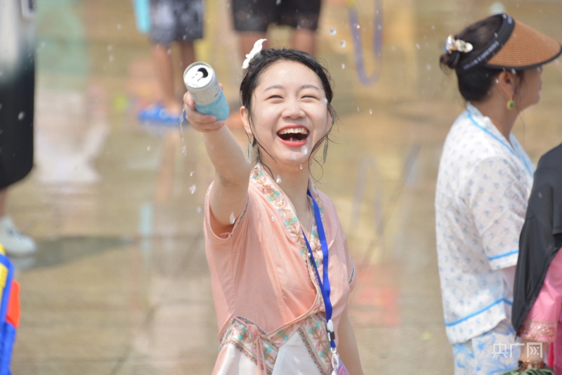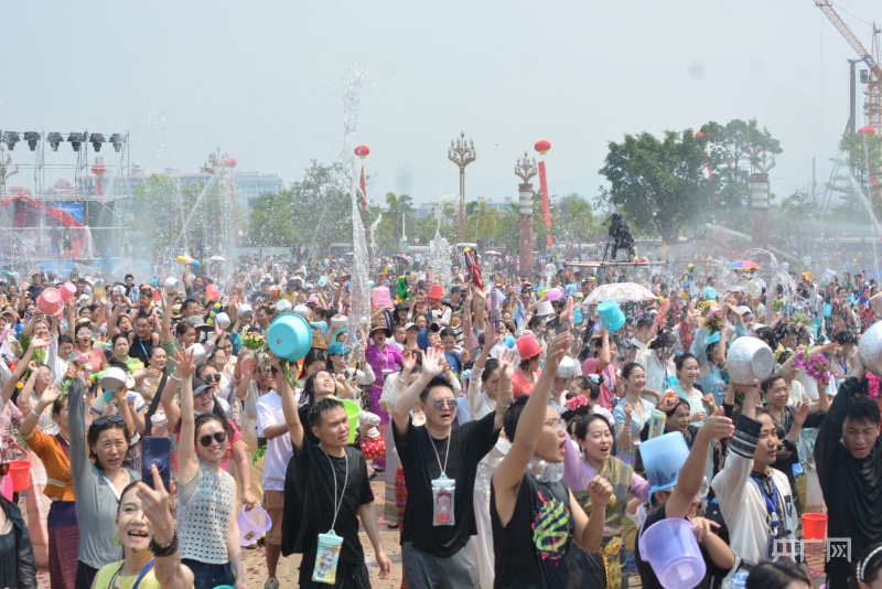 广场上大家互相泼水送祝福(央广网发景谷县融媒体中心供图)