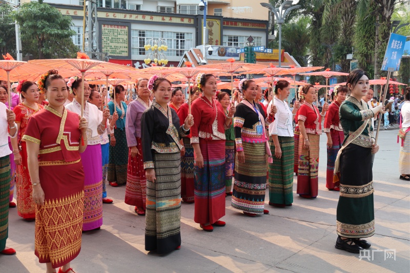 傣族花伞方队(央广网记者赵贝贝摄)