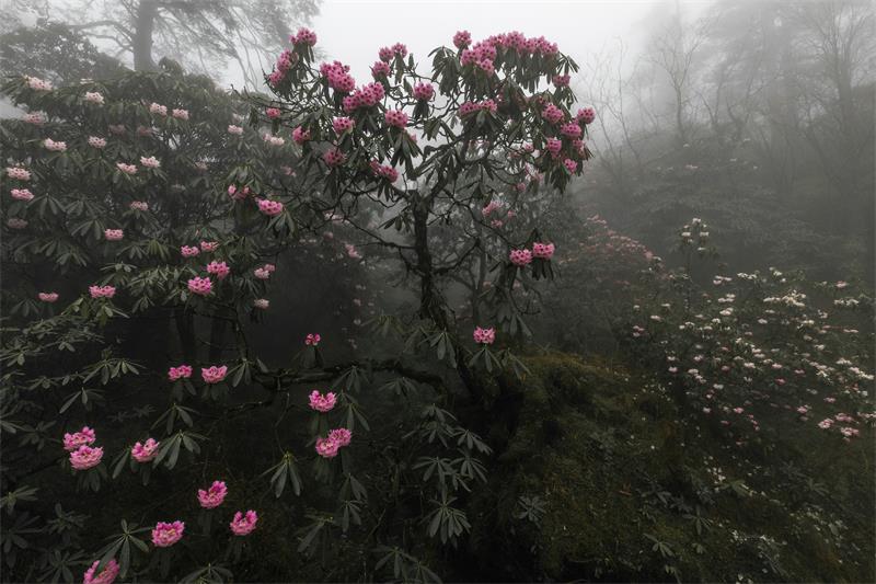 杜鹃花被誉为“花中西施”,尤以高山杜鹃最为惊艳。峨眉山常年云雾笼罩,细雨连绵,极适宜杜鹃花生长繁殖,素有“杜鹃王国”之美誉。每年4月至6月,峨眉山上约30种杜鹃花竞相绽放,特别是海拔2000米以上的高山区,荟萃了全山近2/3的品种,让游客陶醉其中、流连忘返。