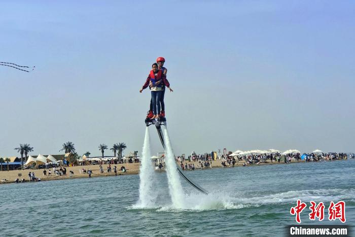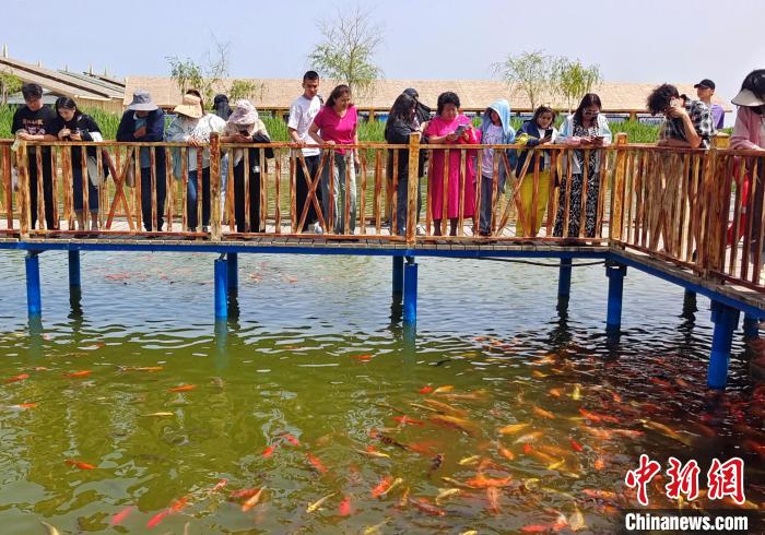 “五一”小长假期间,新疆各大湖泊迎来旅游热潮。在中国最大的内陆淡水湖博斯腾湖多个景区内,以水、沙滩、日光浴、水上娱乐为主的旅游元素,吸引疆内外众多游客,享受舒适轻松的假期。据大河口景区介绍,“五一”假期该景区日均游客达2万人次。