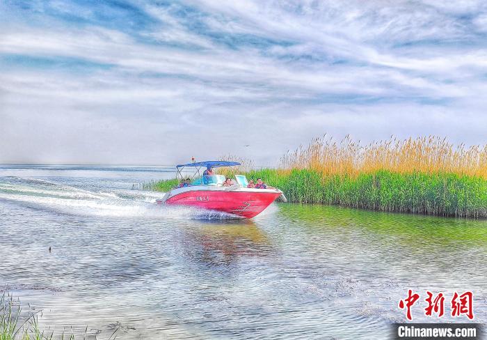 游客在芦花港景区体验快艇的乐趣。史玉江摄