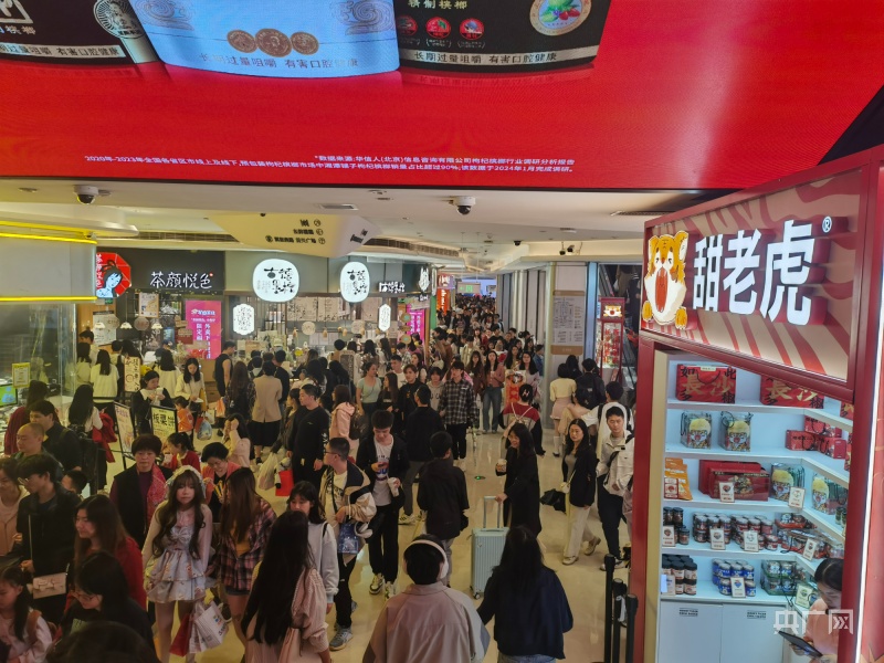 据悉,五一商圈假期累计客流量达到531.88万人次(央广网记者黄珂岚摄)