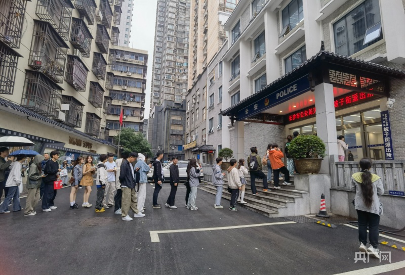 游客有序打卡“网红打卡地”坡子街派出所(央广网记者黄珂岚摄)