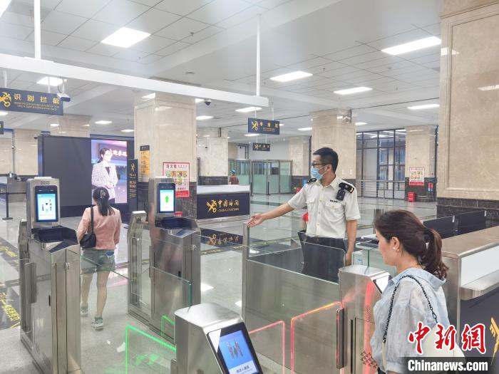 图为海关关员引导旅客通过智慧验放闸机。杨德飞摄