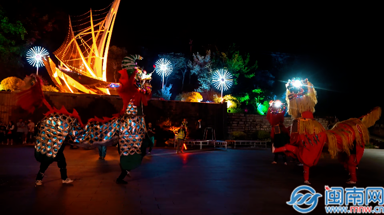 闽南网5月8日讯(通讯员 诏闻天下 闽南网记者 张恩培 文/图)“在传承创新中抢救非遗,在演出实践中弘扬非遗。”为满足群众的精神文化需求,探索非遗保护及活化利用,弘扬优秀传统文化,“五一”假期,诏安开展非遗文化进景区活动,在闽粤第一城景区上演“三狮戏麒麟”,为游客带来了一场精彩绝伦的文化盛宴。