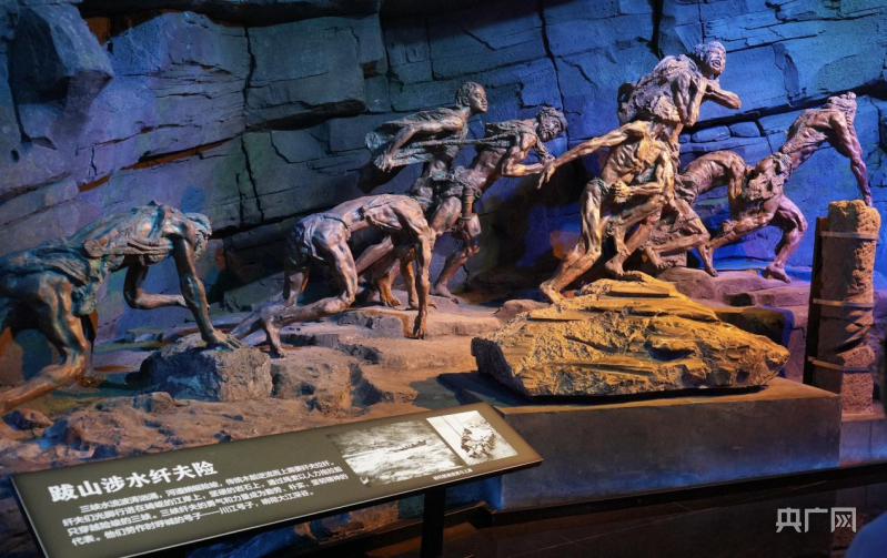 《跋山涉水纤夫险》雕塑(央广网发刘炼志摄)